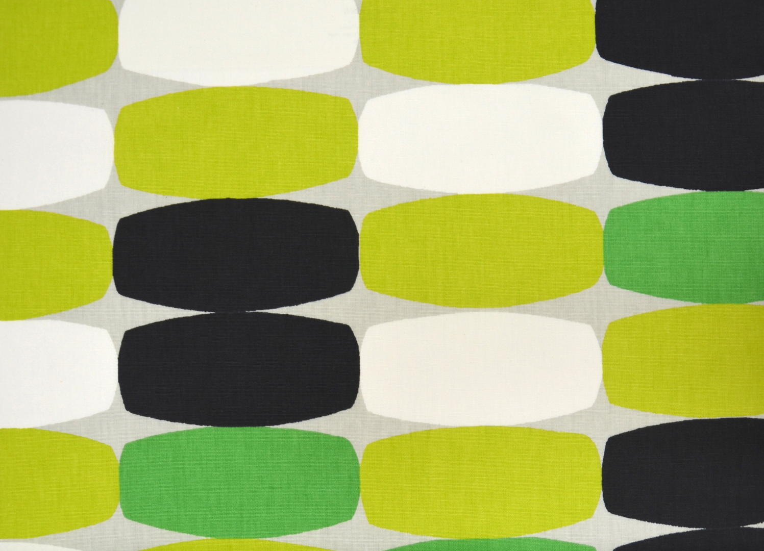 Dit retro gordijn met eenvoudig motief is beschikbaar in vijf verschillende kleurencombinaties.