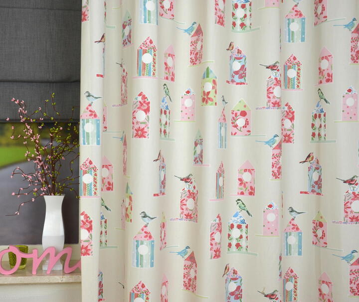 Welk vogeltje durft er uit zijn kooitje te komen? Met dit roze meidengordijn kan uw dochtertje eindeloos vogels spotten in haar eigen slaapkamer.