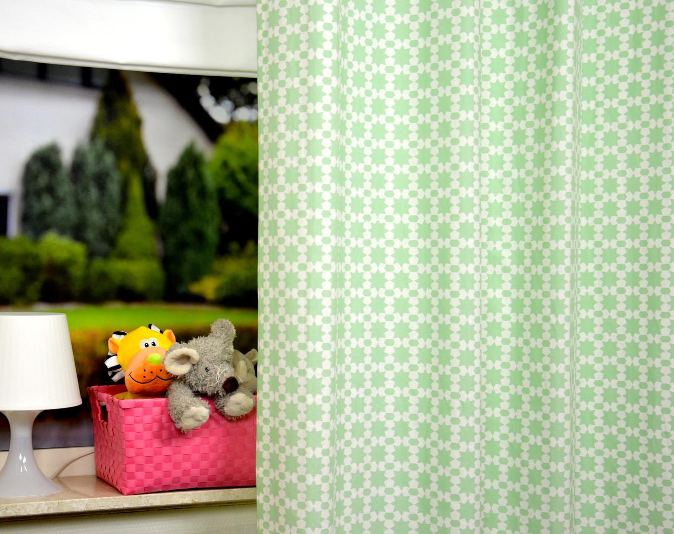 Dit unieke kindergordijn bevat een prachtige subtiele print in een rustgevende kleurensamenstelling. Voor het mooiste effect adviseren wij u om deze stof te laten voeren. Kindergordijnen.nl verwerkt het vervolgens kosteloos tot een kant-en-klaar gordijn.