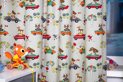 Op reis naar dromenland in een klassieker. De droom van menig (jonge)man! Dit gordijn is bedrukt met deze vrolijke & fantasierijke afbeeldingen. De stof is leverbaar in 2 kleuren; een warm grijze ondergrond of licht petrol blauw. De tekeningen zijn zo’n 10 x 12 cm groot en gedrukt op fijn geweven, matte katoen. Door de nostalgische plaatjes is het gordijn lieflijk en tijdloos. Rijd jij mee naar dromenland? Voor een donkere slaapkamer kan je deze stof laten voeren.