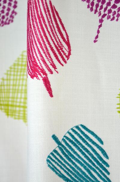 Blaadjes! Dit rustige en supermooie kindergordijn heeft opgeborduurde blaadjes en is in een heleboel verschillende kleursamenstellingen verkrijgbaar. Tip van ons: Bestel eerst een knipstaal/sample, zo weet je precies met welke kleur en kwaliteit jouw gordijnen worden gemaakt.