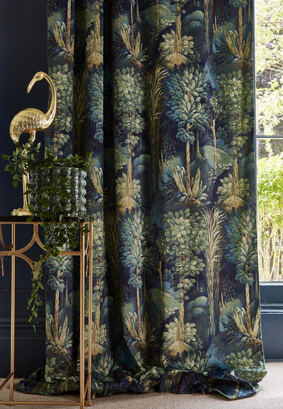 De Forbidden Forest, een gedurft en luxueus bedrukte fluwelen gordijnstof met een levensechte digitale tropische print. Perfect voor gordijnen, vouwgordijnen en zelfs voor meubelbekleding geschikt!