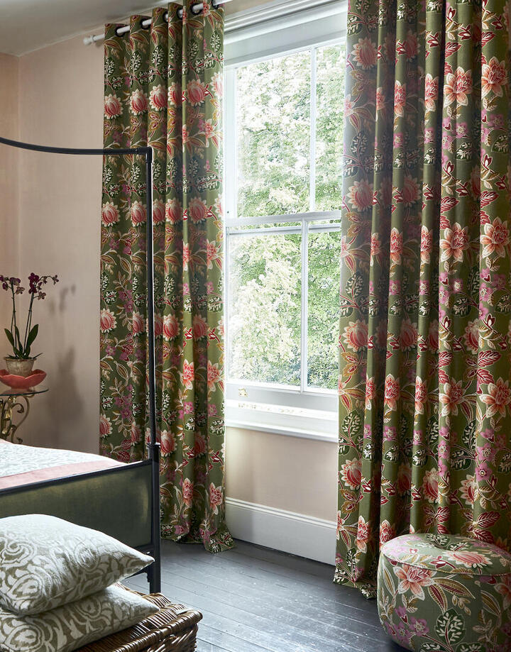 Dat geldt zeker ook voor deze gordijnstof met de naam Kamala, een unieke gordijnstof met een bloem en bladmotieven dessin.