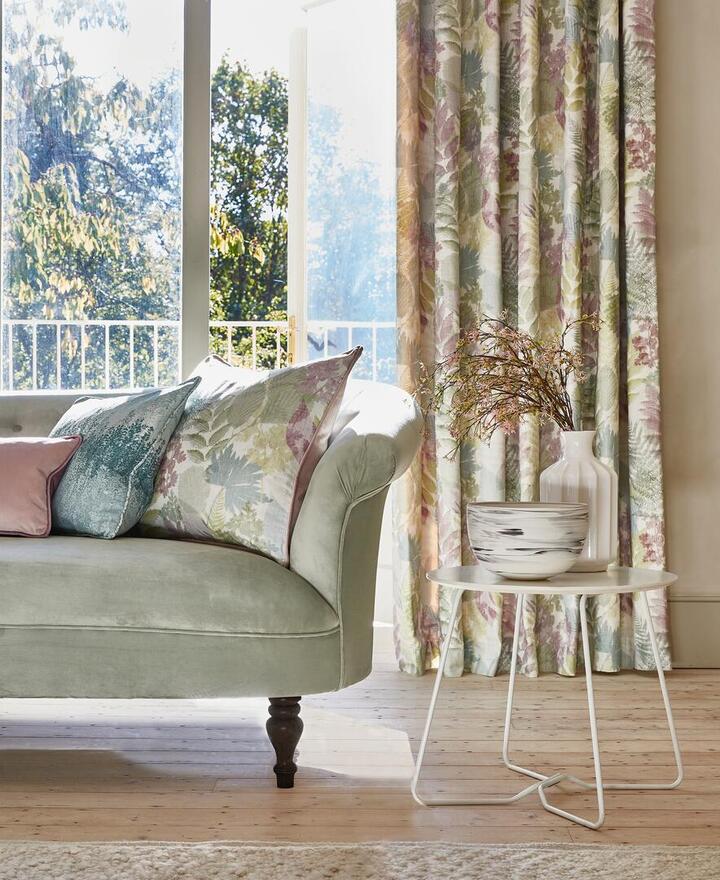 Dat geldt zeker ook voor deze gordijnstof met de naam Forest Leave, een unieke gordijnstof met een bloem en bladmotieven dessin.