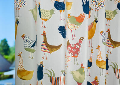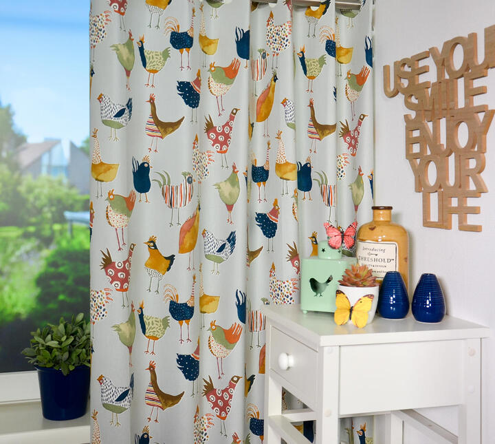 Tok, tok! Dit super gave kindergordijn met kippen is gewoon te gaaf om niet in een kinderkamer te moeten hangen. Als je helemaal verzot bent op kippen en kuikens en alles wat hiermee te maken heeft dan kan deze niet ontbreken in je kind zijn slaapkamer. (of in die van jezelf)