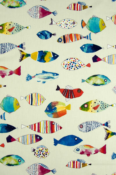 Dat geldt zeker ook voor deze gordijnstof met de naam Fishing, een unieke gordijnstof met een dessin.