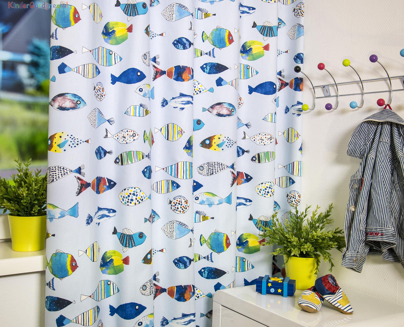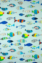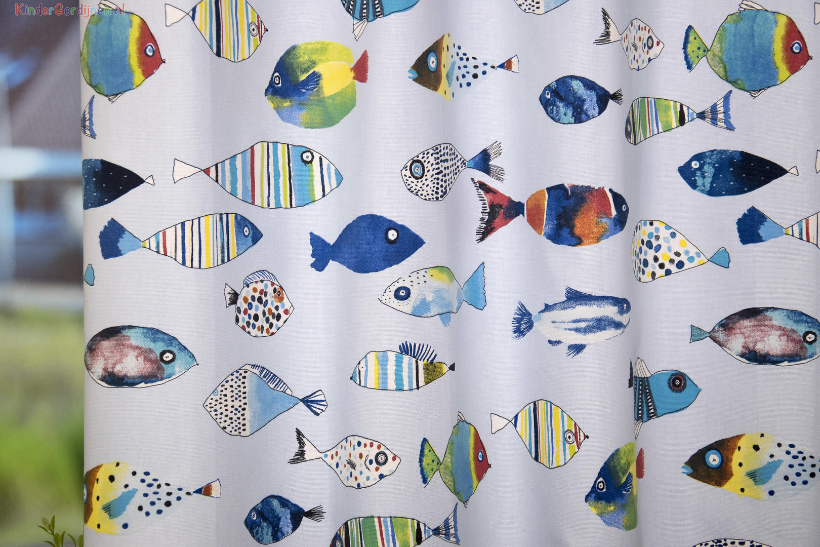 Dat geldt zeker ook voor deze gordijnstof met de naam Fishing, een unieke gordijnstof met een dessin.