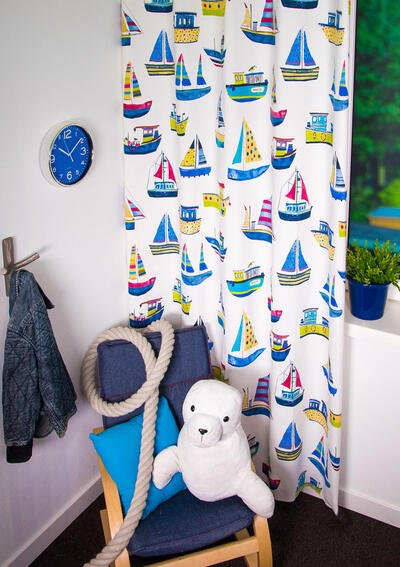 Dat geldt zeker ook voor deze gordijnstof met de naam Boat Club, een unieke gordijnstof met een dessin.
