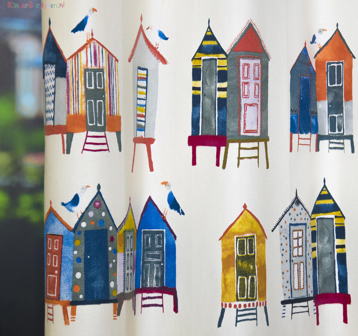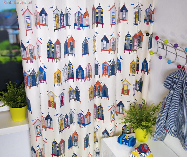 Dat geldt zeker ook voor deze gordijnstof met de naam Beach hut, een unieke gordijnstof met een dessin.