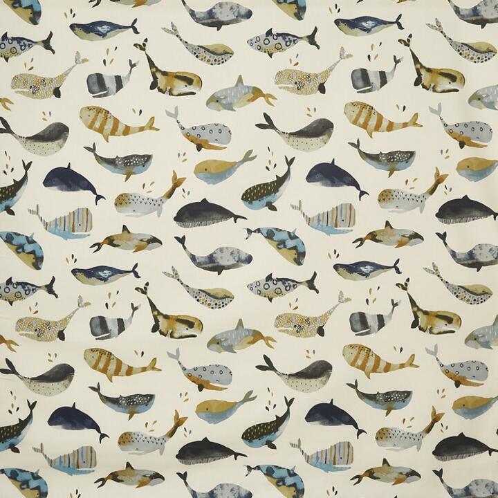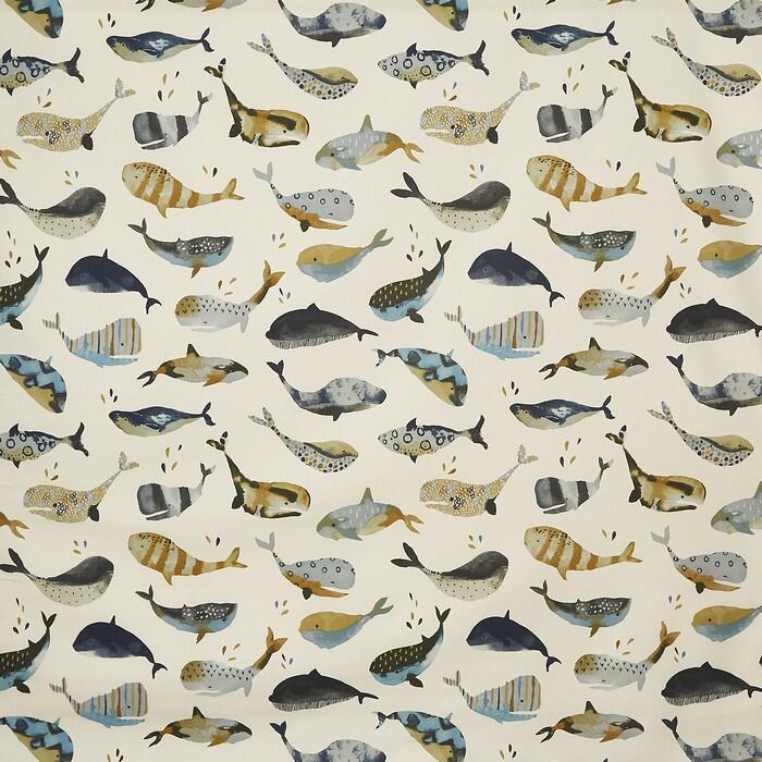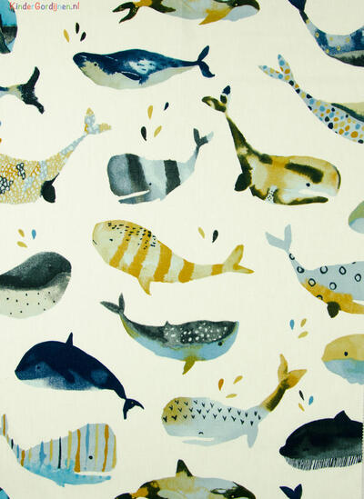 Dat geldt zeker ook voor deze gordijnstof met de naam Whale Watching, een unieke gordijnstof met een dessin.