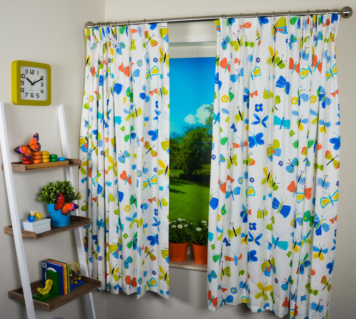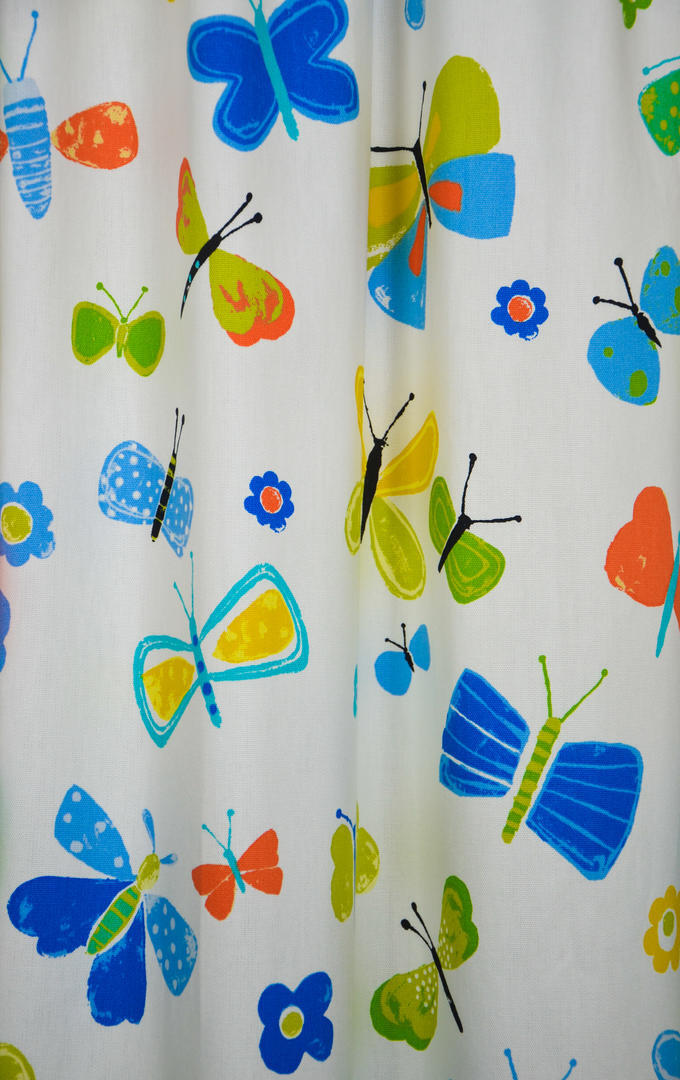 Vrolijke vlinders fleuren je kamer op! De afbeeldingen zijn gedrukt op een matte, ietwat geruwde katoenen stof en dat geeft een sportief effect. De vlinders zijn gemiddeld 9 cm groot en nonchalant verdeeld over de stof. Dit sluit helemaal aan bij de actuele woontrend: we koesteren de natuur en buiten mogen we binnen laten zien. De basisstof is warmwit en lichtdoorlatend. Het gordijn kan heel goed gecombineerd worden met een vrolijk gekleurde accentwand. Ga jij voor zo’n mooie vlinder in je kamer?