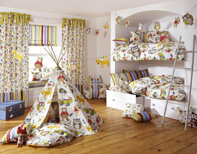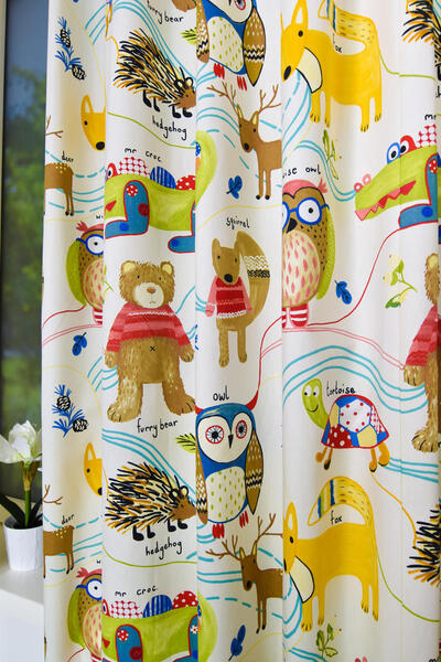 Gordijnen van een gewéldige merk! Vernieuwend en trendsettend, dat is waar dit merk voor staat. Saai en braaf kan altíjd nog. Wanneer je voor dit dierengordijn kiest, weet je dat sfeer en kleur gegarandeerd zijn! Ideaal wanneer je wanden met spack of structuur op de kinderkamer hebt, en behangen geen optie is. Op deze dierengordijnen is zoveel te zien. Door het royale patroon kan het gordijn uitstekend tot de grond gemaakt worden. De vos en de uil zijn b.v. 18 cm groot en gedrukt op matte, ietwat geruwde stof. Dat geeft een vlotte uitstraling. Leverbaar in 5 verschillende kleuren, dus jouw voorkeur zit er vast & zeker bij. Mogen deze bosdieren bij jou komen wonen?