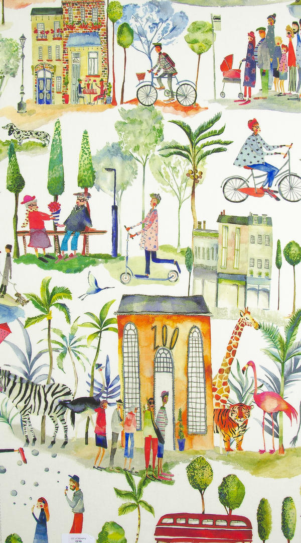 Wat een super tof kindergordijn is dit weer! Bekijk de kleuren en hoe mooi alles tot zijn recht komt! Het is het thema Out and About. Dit betekend allerlei verschillende dagjes uit die je ziet. Zoals de dierentuin of fietsen. Het is een super soepel 100% katoenen gordijn en is nieuw in het assortiment. Je hebt keuze uit twee verschillende kleursamenstellingen. Een tip van flip: Bestel eerst een knipstaal/sample, zo weet je precies welke kleur en kwaliteit je gordijnen hebben.