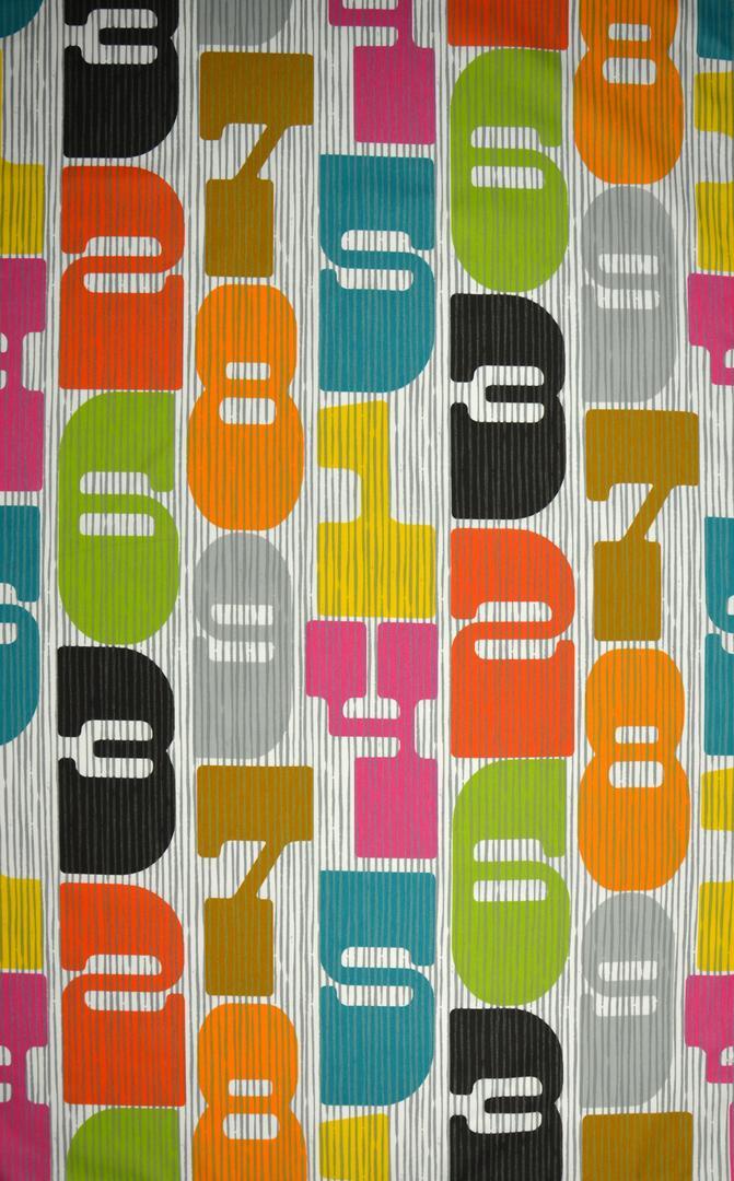 Dit is een ORIGINEEL gordijn! Door de grafisch vormgegeven cijfers in verschillende kleuren, is dit gordijn tijdloos en toch óók echt voor Kids! De getallen zijn royaal groot, zo’n18 cm. Daardoor is de stof zeer geschikt voor grotere raamoppervlaktes. De ietwat gedekte kleuren: okergeel, fuchsiaroze en diep turquoise; zijn gedrukt op een warm witte, matte ondergrond. Daardoor is de stof kleurrijk, maar niet druk. Desgewenst verduisterend te voeren.