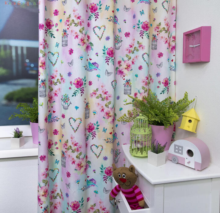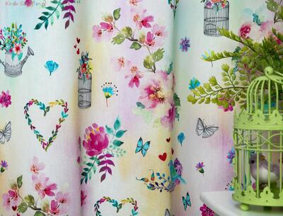 Dat geldt zeker ook voor deze gordijnstof met de naam Romance Garden, een unieke gordijnstof met een kinderkamer dessin.