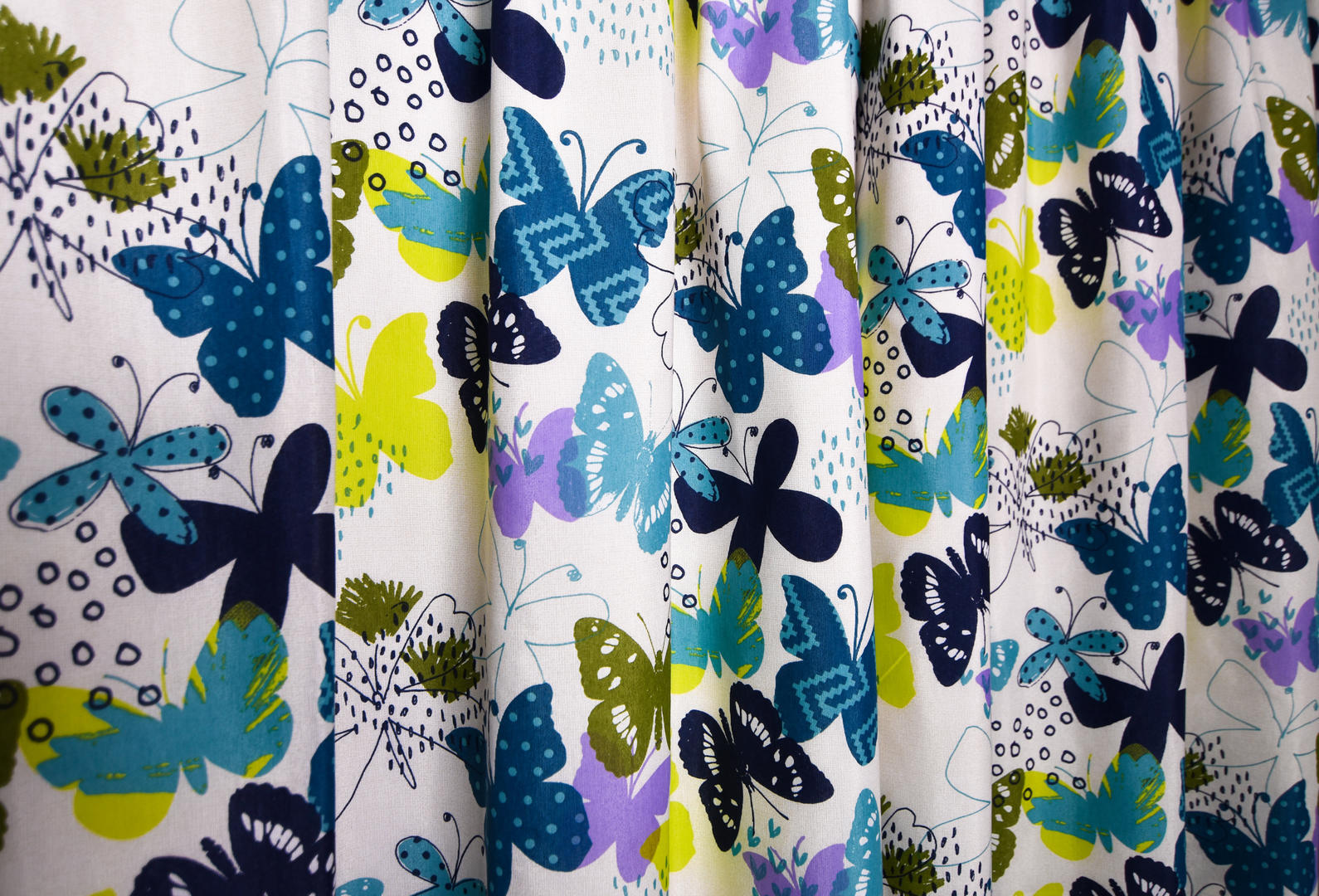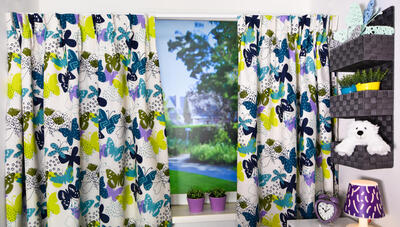 Vlinder, vrolijk, zomers, dat straalt dit gordijn helemaal uit! Het thema is leverbaar in 3 verschillende kleurpaletten. De vlinders zijn 10 tot 15 cm groot en gedrukt op ietwat geribde stof. De ondergrond is bij alle soorten een antiekwitte kleur, bijna linnenlook. Dit geeft een extra warme uitstraling. Dit gordijn is kamerhoog, dus voor dezelfde prijs kan je het fraai tot de grond laten maken. Voor extra kleurbehoud of verduistering, graag laten voeren.
