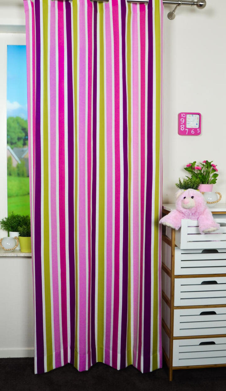 Strepen zijn STYLISH! Makkelijk te combineren met andere patronen en afbeeldingen. Ook geeft een streep een hoogte effect, waardoor de kamer wat ruimtelijker lijkt. Dit gordijn is leverbaar in 5 verschillende kleurcombinaties en allemaal voorradig! Snelle levering is daardoor gegarandeerd. Het patroon is gedrukt op licht geribde, matte stof, wat een vlotte uitstraling geeft. De strepen zijn 5 cm breed en voor kleurbehoud of een donker makend effect graag even voeren.