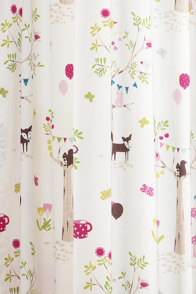 SCHATTIG! Nostalgisch getekende dieren zijn afgebeeld op dit kindergordijn. De stof is soepelvallend en in satijnlook fijn geweven. Het gordijn is leverbaar in 3 verschillende kleurpaletten, beide geschikt voor zowel de jongens- als meisjeskamer. De stam van de boom is b.v. 20 cm groot, het vosje 8 cm. Krijg jij een kindje en je weet niet wat “het” gaat worden, dan is dit een uitstekende keuze. Stippen behang op 1 wand is een leuke combi, al dan niet met een subtiel vosje erop. Voor verduistering graag optie voeren in het bestelproces aanvinken.