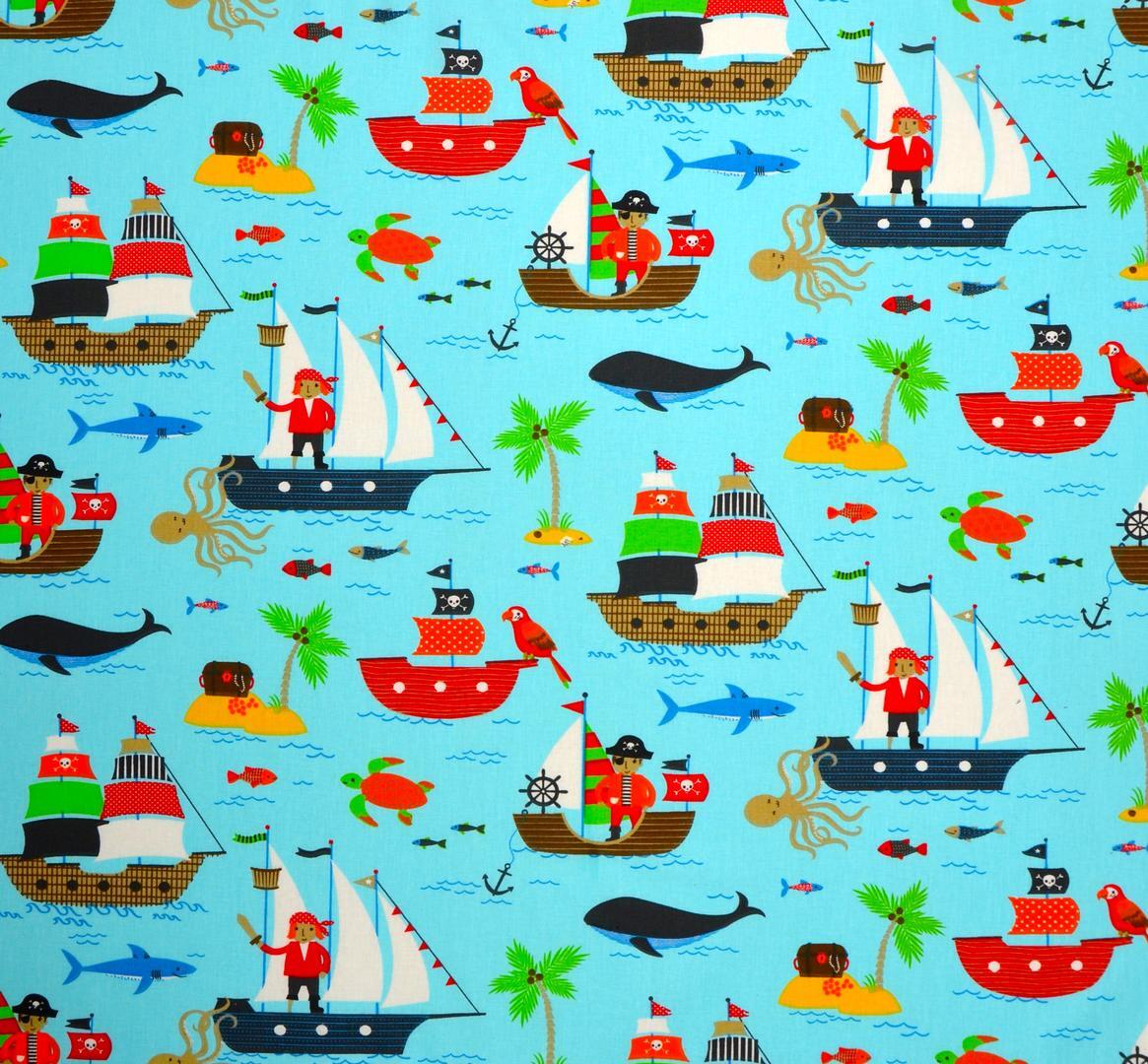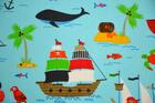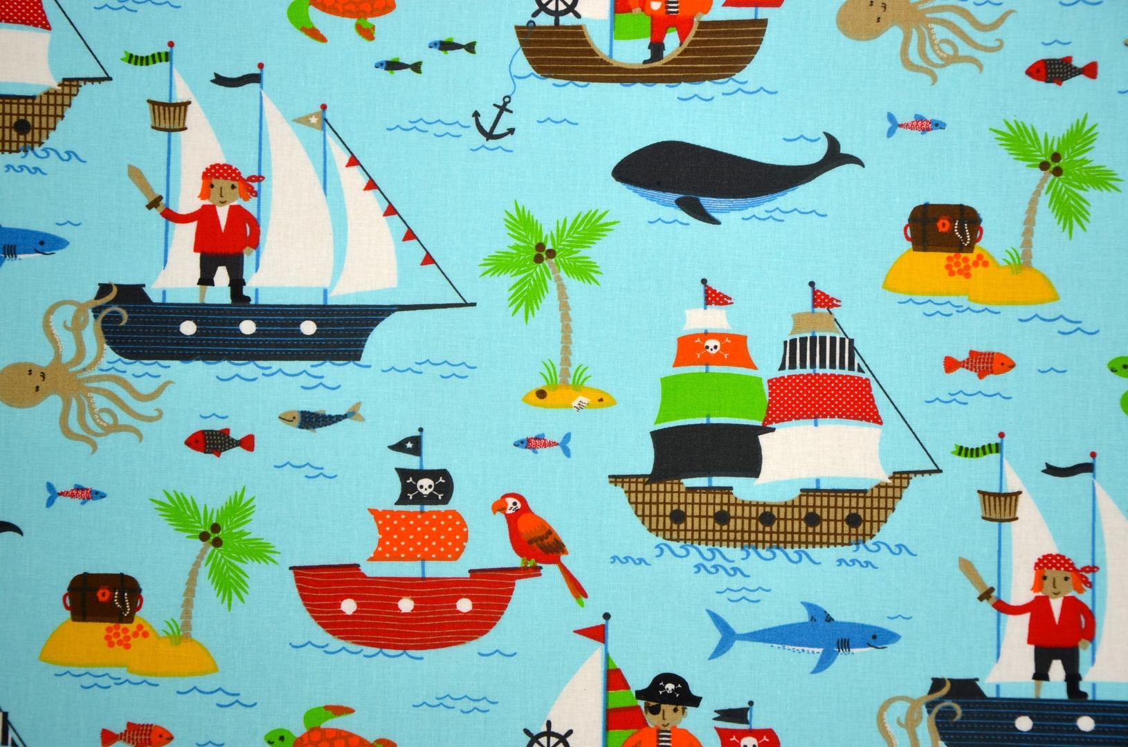 “Ai.. Ai .. Kapitein we hijsen de zeilen” Deze vrijgevochten piraatjes weten precies waar zij heen willen: naar verre landen met een tropisch klimaat. Palmbomen, kokosnoten en het zonnetje op je bol. Wie wil dat relaxte sfeertje nou niet op zijn slaapkamer? De afbeeldingen zijn gedrukt op gladde, matte katoen en leverbaar in 2 kleuren. De scheepjes zijn zo’n 10 cm in doorsnede. Wil je dat het gordijn ook verduisterd? Dan graag even laten voeren. Tot ooit op dat onbewoonde eiland!