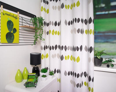 Dat geldt zeker ook voor deze gordijnstof met de naam Sfera Limoen, een unieke gordijnstof met een bloem en bladmotieven dessin.
