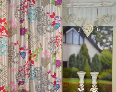 Kleurrijk gordijn met een bont bloemenmotief voor de meisjeskamer. De unieke bedrukte gordijnstof is samengesteld uit polyester en katoen en voelt daardoor heerlijk zacht aan.