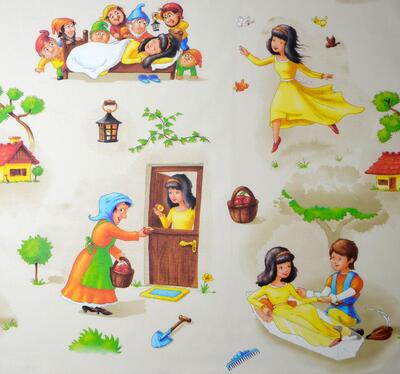 Dat geldt zeker ook voor deze gordijnstof met de naam Sneeuwwitje, een unieke gordijnstof met een disney dessin.