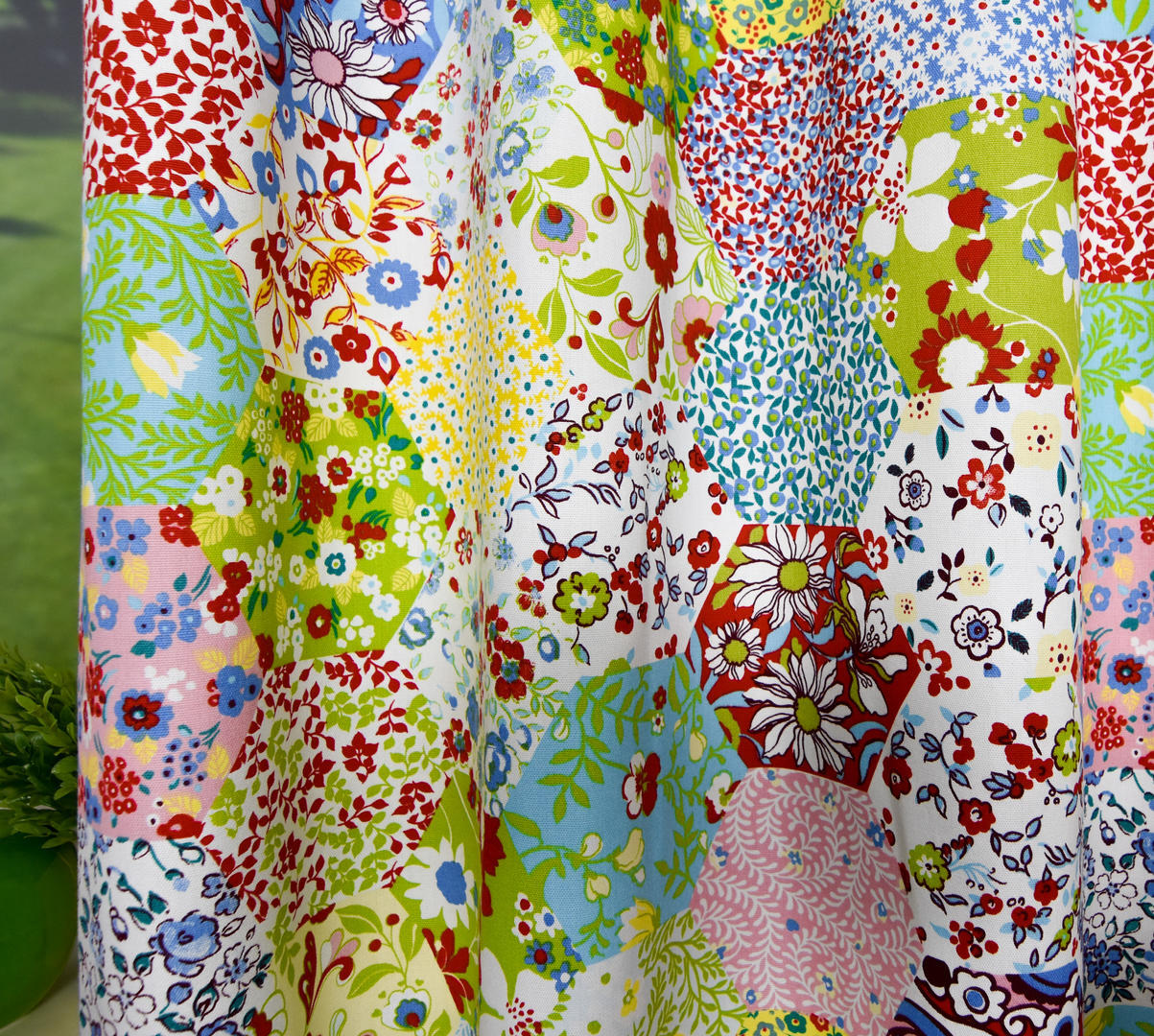 Dat geldt zeker ook voor deze gordijnstof met de naam Summer Patchwork, een unieke gordijnstof met een bloem en bladmotieven dessin.