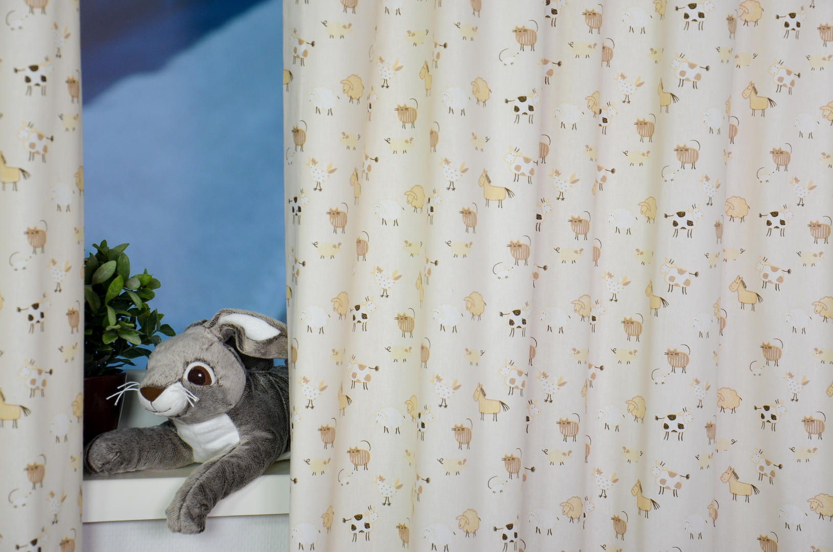 Schaapjes, ezels, koeien en katten nemen een kijkje in de kinderkamer. Dit kindergordijn is een must voor alle (boerderij)dierenliefhebbers! Kindergordijnen.nl verwerkt de stof gratis tot een kant-en-klaar gordijn.