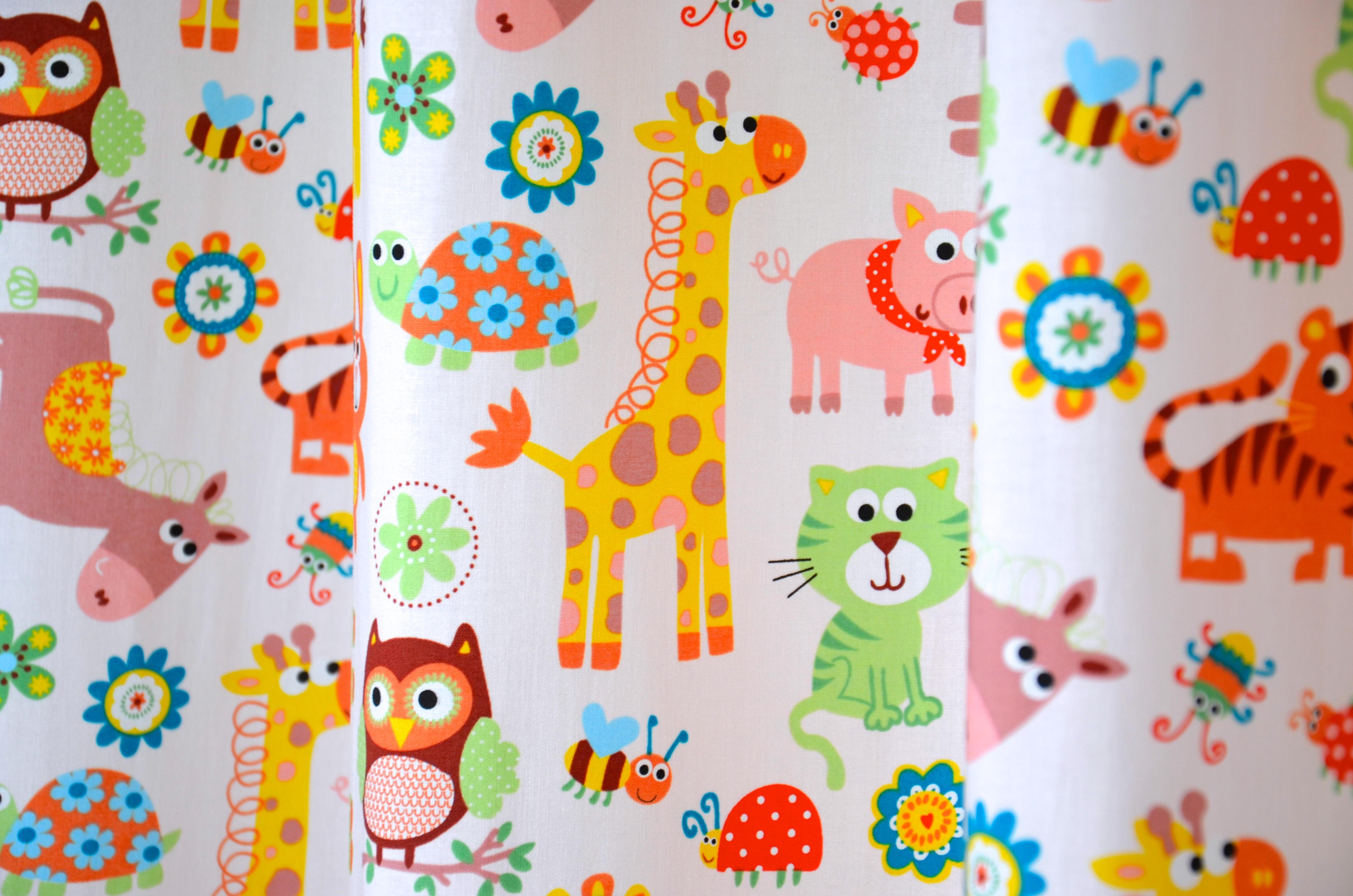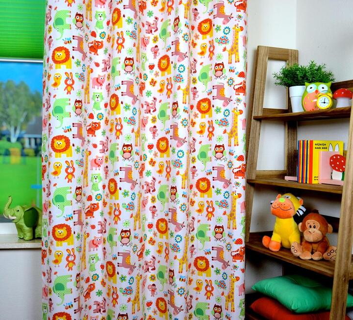 Kindergordijn Smiling Animals. Dit mooie gordijn is echt een plaatje om te zien. Het is gemaakt van 100% katoen waardoor het heerlijk zacht aanvoelt. Om dit supergave gordijn goed lichtdicht te maken is het aan te bevelen om het te laten verduisteren. Dit is natuurlijk helemaal handig in de zomer, de verduisterende voering houdt namelijk ook veel warmte tegen.