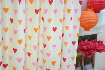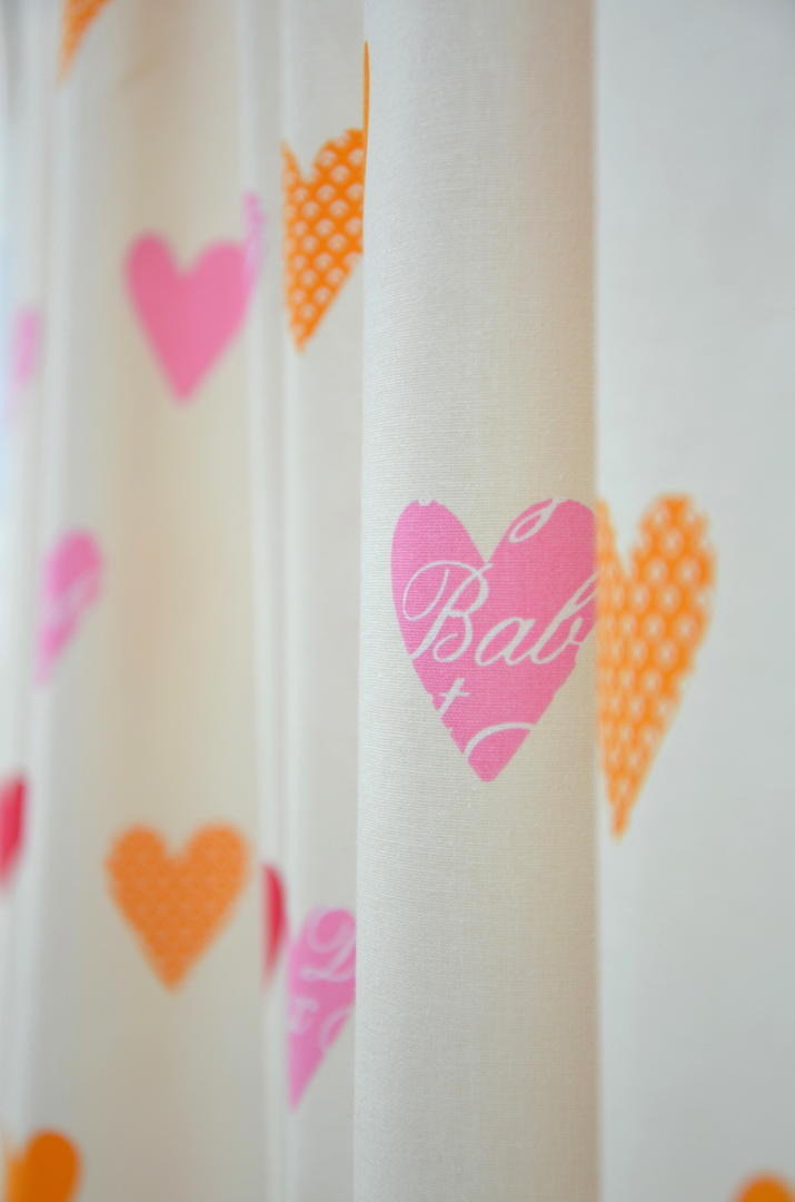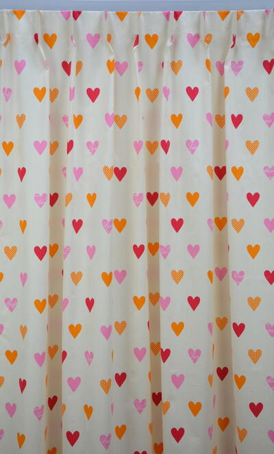 Met dit lieflijke kindergordijn wordt uw dochter elke dag blij wakker! Kleurrijk kindergordijn bomvol oranje, rode en roze hartjes. Door de kleurencombinatie geeft dit gordijn een warme sfeer in elke kinderkamer.