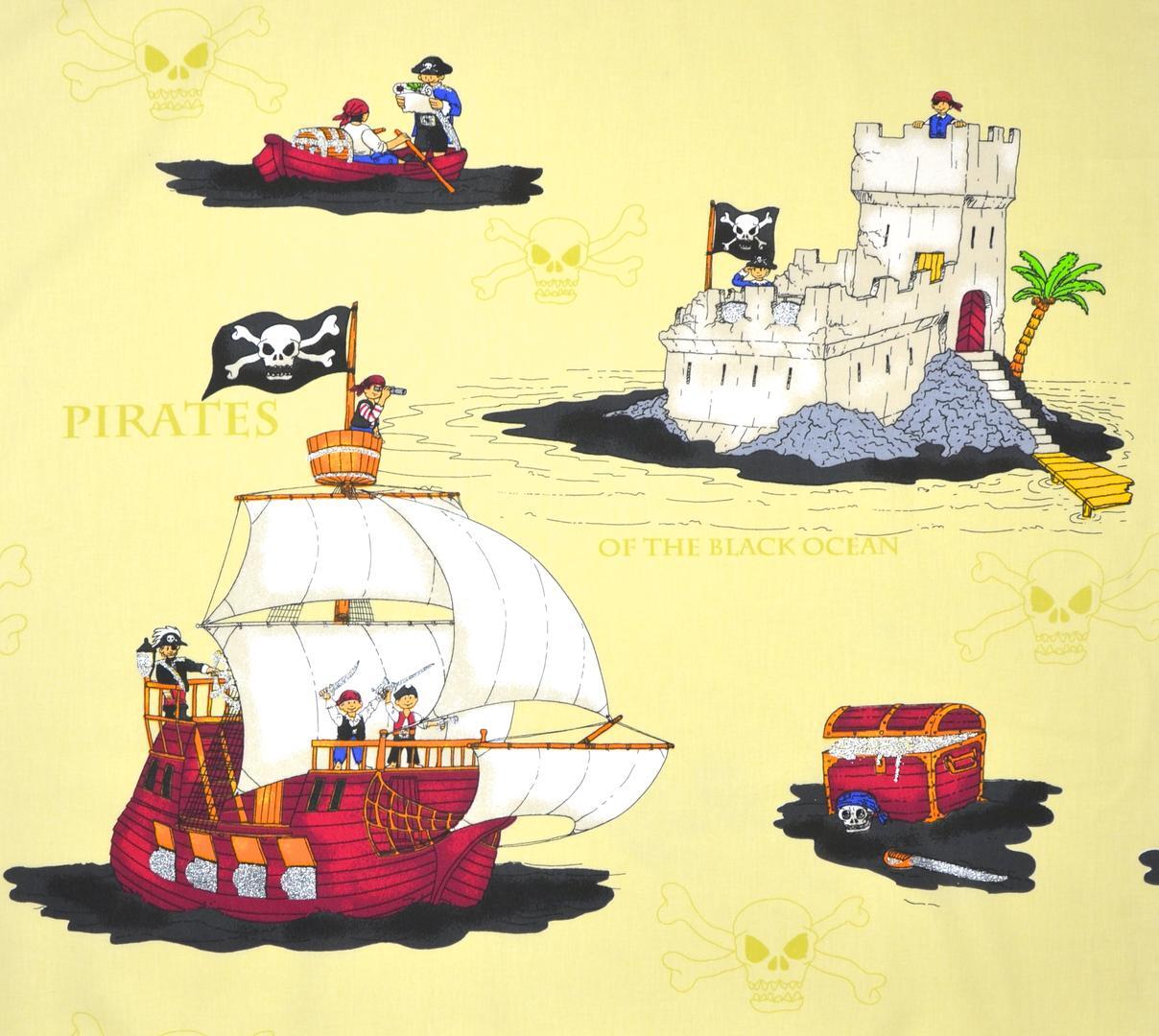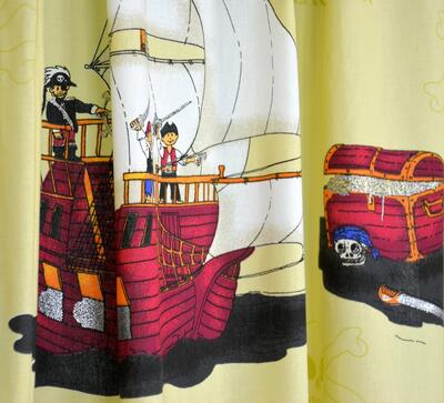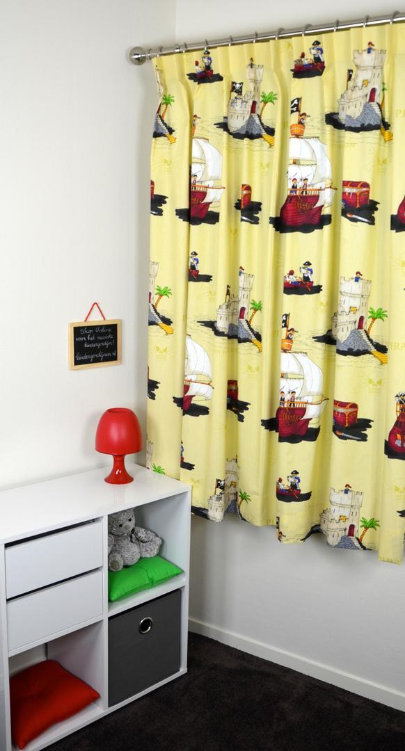 Avontuurlijk piratengordijn vol schepen, schatten en kastelen voor de kleine ontdekkingsreizigers. Verkrijgbaar in drie verschillende kleuren.