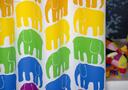 Elefantti olifant, hier als kunstzinnig dier. Wat een plezier om zo’n krachtige vorm gestileerd op je gordijn terug te zien. De Olifantjes zijn 10 cm groot en gedrukt op matte, luchtig geweven stof. Het gordijn is leverbaar in 2 kleurcombinaties, te weten warm-wit met fris middengrijs en multicolor gedrukt op dezelfde warm-witte ondergrond. Daardoor passend voor de jongens- en meisjesslaapkamer en geschikt als je niet weet “wat het gaat worden”. Het leuke van dit olifantengordijn is dat de repeterende vorm best strak aandoet en toch met een knipoog naar de kinderkamer. Kortom een gordijn voor diegene die van een rustige basis houdt en niet direct in een effen oplossing wil vallen. Voor extra verduistering graag even laten voeren.