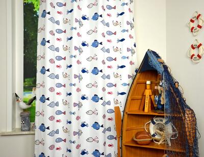 Dit is een bijzonder gordijn! Het patroon is geborduurd en óók nog ingevuld met echte stof. Dat geeft een rijk effect en extra diepte aan de visjes. De zeedieren zijn zo’n 8 tot 16 cm groot en leverbaar in 2 kleuren. De ondergrond is mat en stoer geweven katoen; haast linnenstuctuur. De nautische stijl kun je verder uitwerken in leuke woonaccessoires en ook bijpassende kussentjes maken het thema compleet. Voor verduistering graag even voeren.