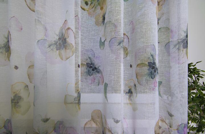 Mooie en unieke transparante vitrages en inbetweens perfect geconfectioneerd, dat is wat we belangrijk vinden. Dat geldt zeker ook voor deze inbetween Gift. De stof is kamerhoog en voorzien van een loodveter waardoor deze inbetween altijd mooi in de plooi valt. De Gift komt het mooist tot z’n recht met een vlinder of tri-plooi.