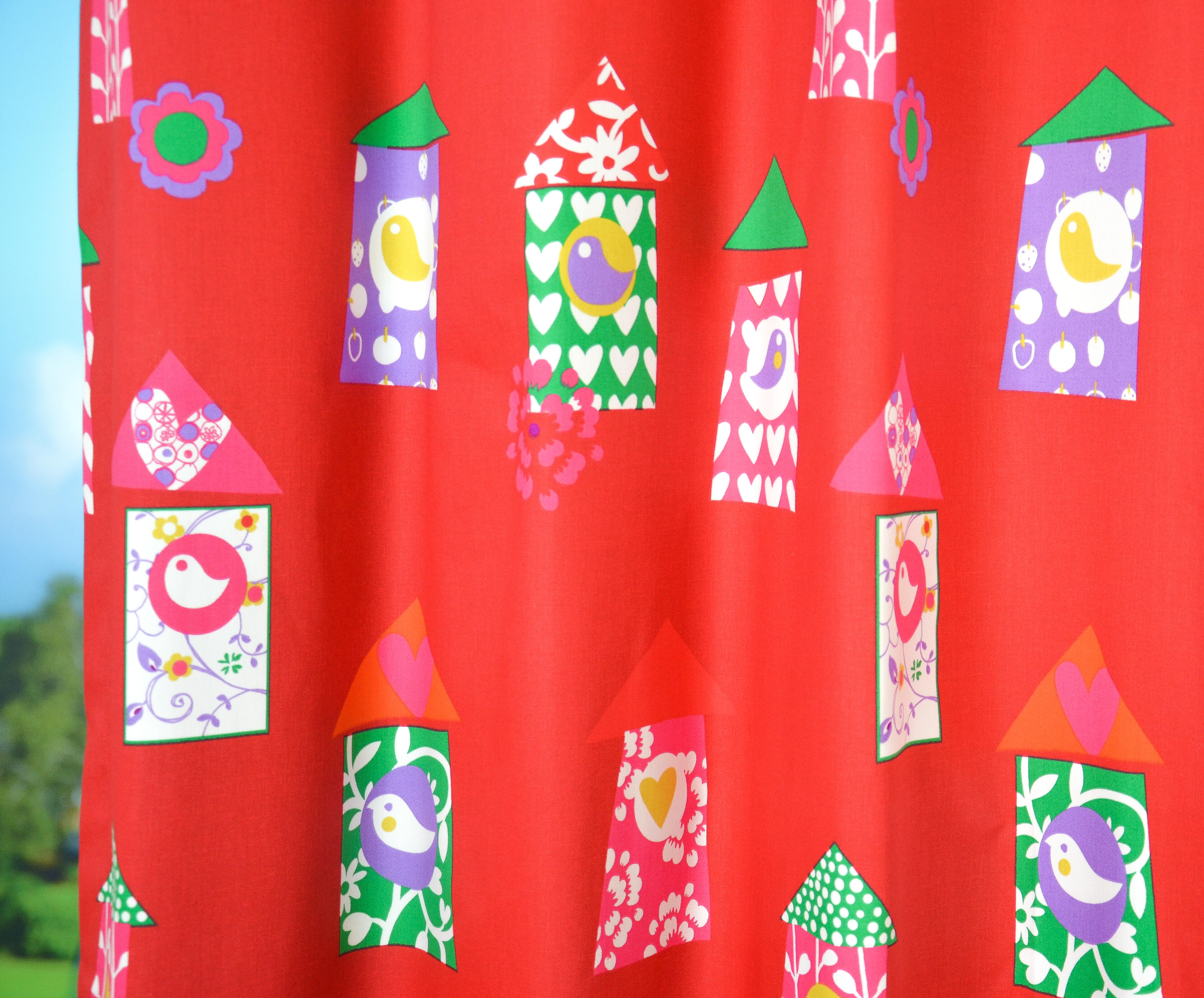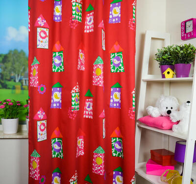 Knus gordijn met een prachtig motief van verschillende vogelkooitjes. Met deze gordijnen verandert de kinderkamer direct in een gezellige plek. De gordijnstof is samengesteld uit polyester en katoen.