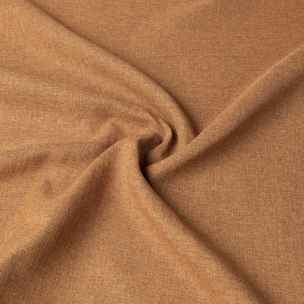 Vlamwerende en half verduisterende volumineus vallende gordijnstof met natuurlijk ogende structuur. De achterzijde van het gordijn is glad geweven.