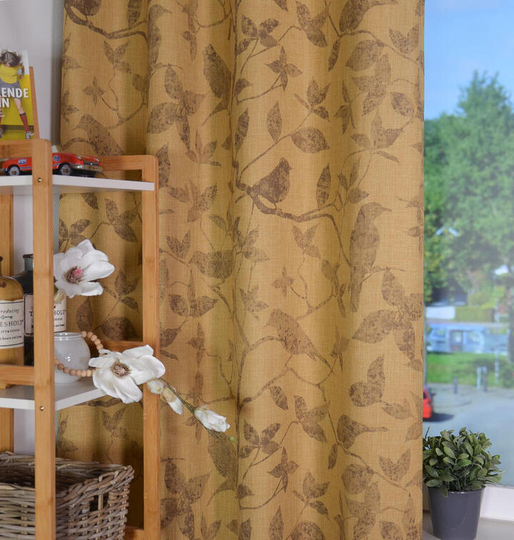 Zeer soepel vallende gordijnstof met een rustig gekleurd natuurlijk dessin . De gordijnstof heeft een natuurlijke uitstraling van linnen door het gebruik van onregelmatige garens. De print is aan de achterzijde licht zichtbaar.