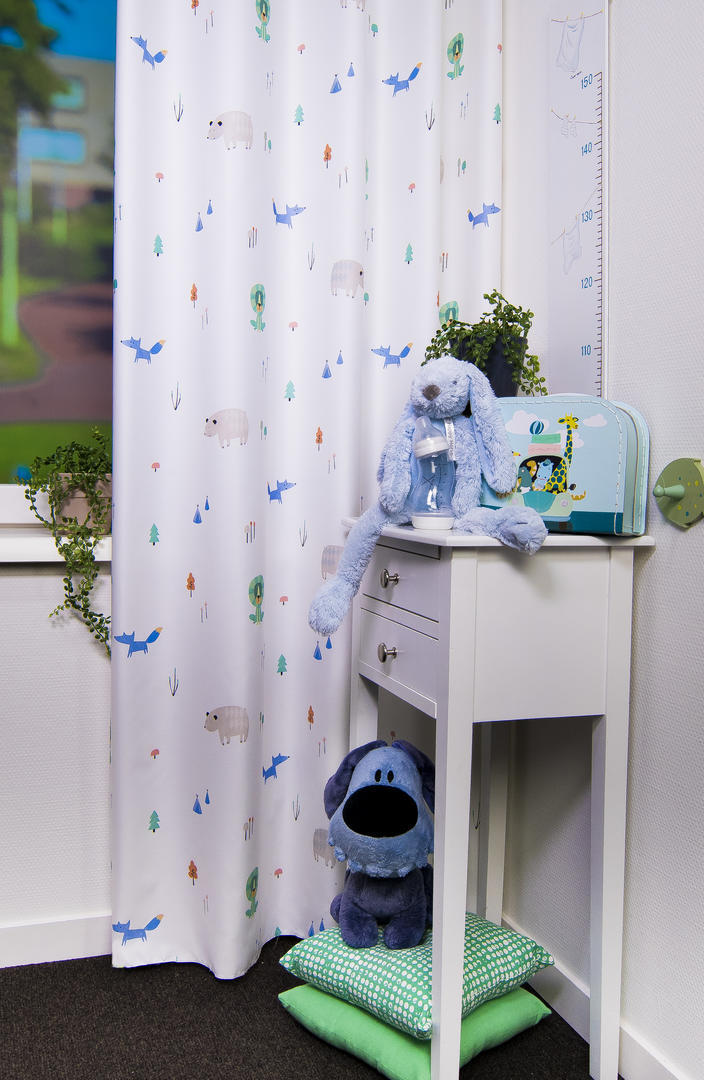Uniek kindergordijn in zachte pastelkleuren, luchtig & lieflijk! Pastel wordt veel gebruikt voor (jonge) kinderkamers omdat het zacht en vriendelijk overkomt. Wanneer je ‘de pastel’ méér power wilt geven, kan je een tint vanuit het gordijn als muurverf gebruiken. Daar creëer je een fraaie balans mee. De stof is dicht geweven, valt soepel en is door zijn samenstelling kleurecht. De tekeningetjes van het patroon zijn +/- 8 cm groot en gedrukt op de warm-witte ondergrond. Voor extra verduistering optie voeren even aanvinken.